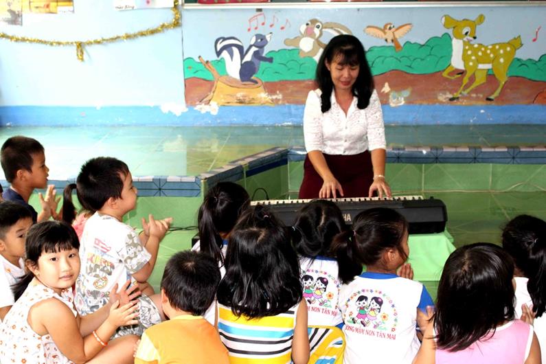 Giáo viên Trường Mầm non Tân Mai, thành phố Biên Hòa đang dạy học cho các em