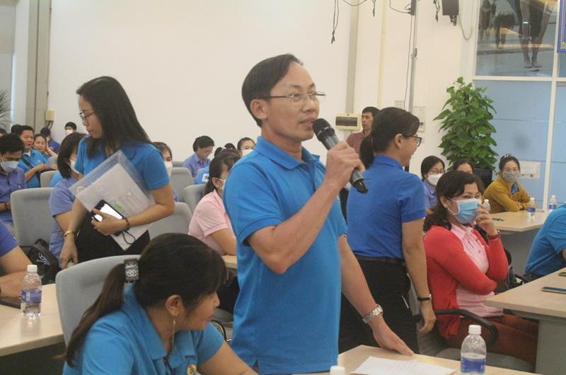 Các đại biểu khách mời trả lời câu hỏi công nhân quan tâm