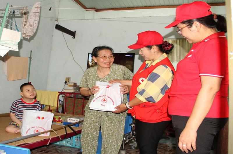 Hội Chữ thập đỏ tỉnh tặng quà cho người già đang được chăm sóc tại Cơ sở Bảo trợ xã hội cô nhi Thiên Bình (P.Tam Phước, TP.Biên Hòa)