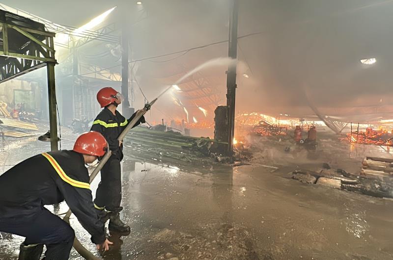 Nhận tin báo cháy, Phòng Cảnh sát phòng cháy, chữa cháy và cứu nạn, cứu hộ (Công an tỉnh) cùng Công an TP.Biên Hòa và Công an H.Trảng Bom đã điều động 6 xe chữa cháy cùng 34 cán bộ, chiến sĩ đến hiện trường dập lửa. Tại hiện trường, diện tích đảm cháy lên đến 300m2, bên trong có nhiều dung môi ngành gỗ, thành phẩm đồ gỗ nên tỏa ra nhiệt độ cao. Lực lượng chữa cháy chuyên nghiệp đã tổ chức tiếp cận vụ cháy từ nhiều hướng để khống chế cháy lan, dập tắt ngọn lửa. Khoảng 11 giờ 25 phút cùng ngày, vụ cháy cơ bản được khống chế và được lực lượng tiếp tục dập tắt lúc 12 giờ 15 phút.