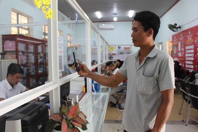 Người dân đánh giá sự hài lòng của mình khi đến thực hiện thủ tục hành chính tại Bộ phận một cửa xã Tam An, H.Long Thành