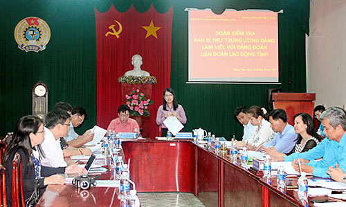 Quang cảnh buổi làm việc của Đoàn công tác Ban bí thư Trung ương Đảng tại LĐLĐ tỉnh.