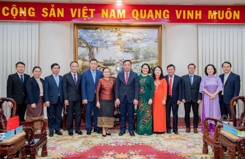 Quyền Chủ tịch UBND tỉnh và lãnh đạo các sở, ngành chụp hình lưu niệm cùng Đoàn công tác của Đại sứ quán nước CHDCND Lào tại buổi tiếp