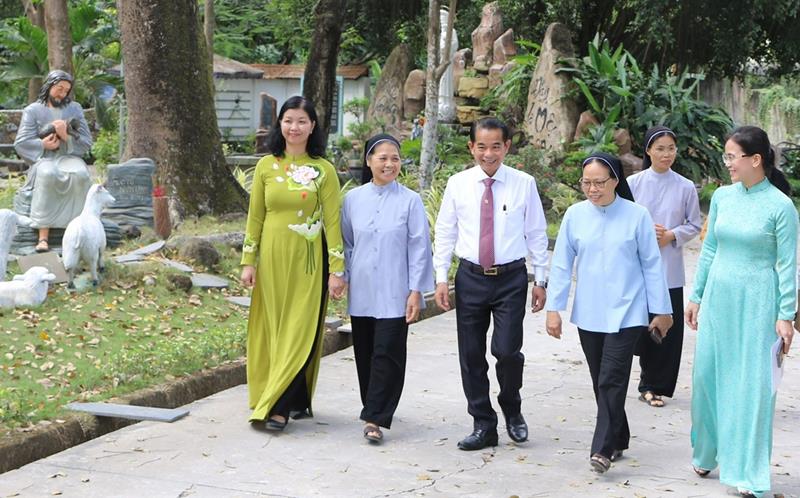 Ủy viên Ban TVTU, Chủ tịch HĐND tỉnh Thái Bảo cùng các nữ tu Nữ Đan viện Xitô Thánh Mẫu Vĩnh Phước (P.Tân Hòa, TP.Biên Hòa) tham quan cơ sở tại đây