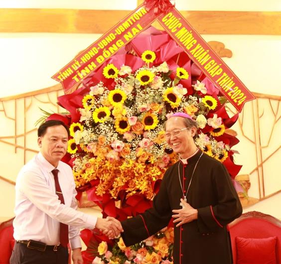 Ủy viên Ban TVTU, Quyền Chủ tịch UBND tỉnh Võ Tấn Đức chúc tết tại Tòa Giám mục Xuân Lộc