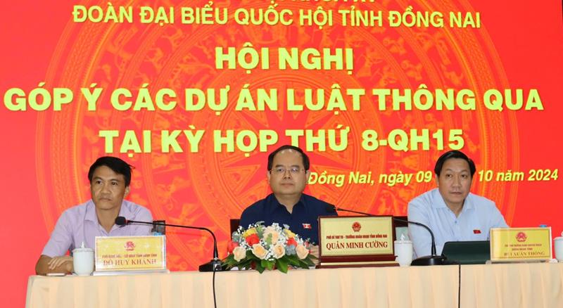 (CTT-Đồng Nai) - Ngày 9-10, tại Công ty TNHH MTV Điện lực Đồng Nai, Đoàn đại biểu Quốc hội tỉnh Đồng Nai tổ chức hội nghị góp ý kiến các dự án luật thông qua tại kỳ họp thứ 8, Quốc hội khóa 15. Phó Bí thư Tỉnh ủy Quản Minh Cường, Trưởng Đoàn đại biểu Quốc hội tỉnh chủ trì hội nghị.