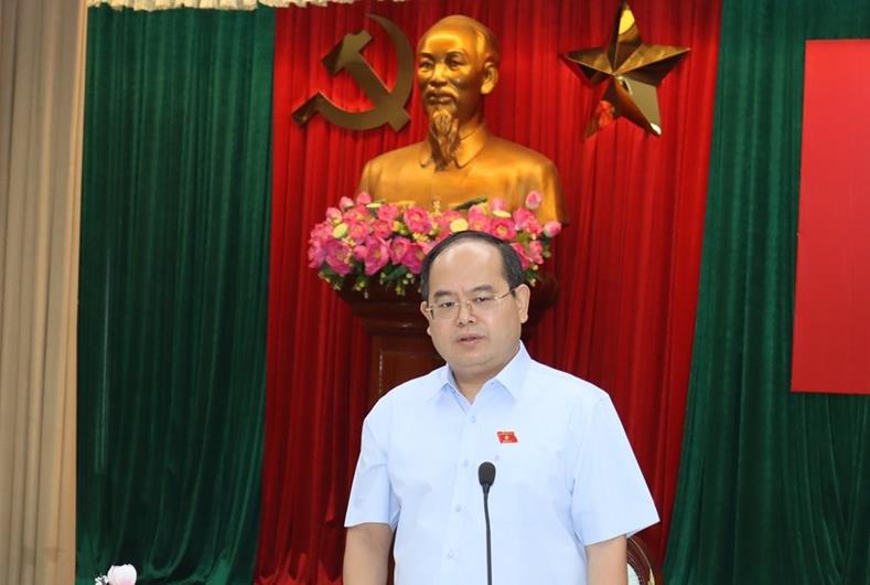 Phó Bí thư Tỉnh ủy, Trưởng Đoàn đại biểu Quốc hội tỉnh Quản Minh Cường, Trưởng đoàn giám sát kết luận tại buổi làm việc
