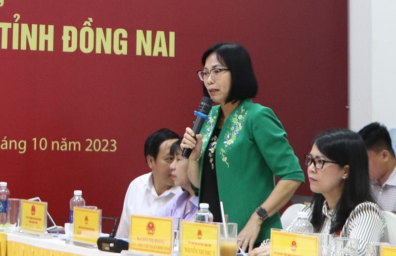 Phó Chủ tịch UBND tỉnh Nguyễn Thị Hoàng phát biểu tại buổi giám sát.
