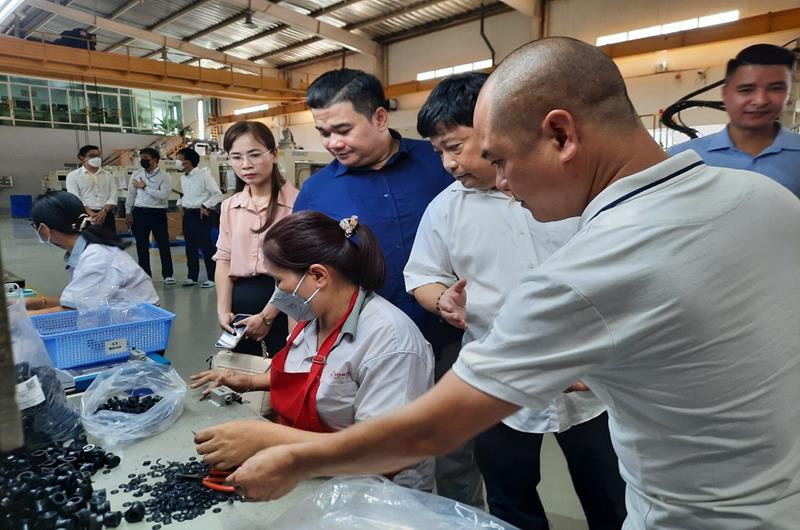 Các doanh nghiệp, hội viên Hội doanh nhân trẻ Đồng Nai tham qua, tìm hiểu cơ hội hợp tác, mua bán sản phẩm tại Công ty TNHH Tương Lai