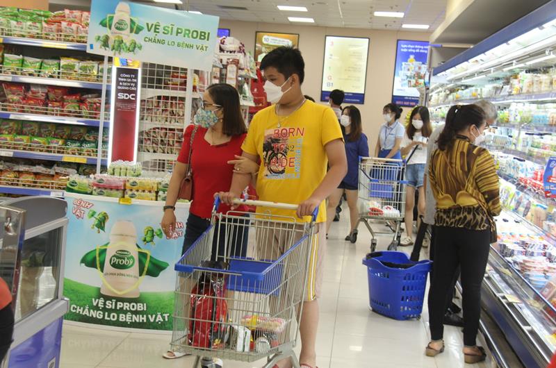Người dân chọn mua các sản phẩm hàng tiêu dùng tại một siêu thị ở TP.Biên Hòa