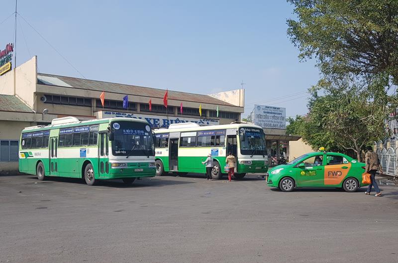 Xe buýt chuẩn bị xuất bến tại bến xe Biên Hòa.
