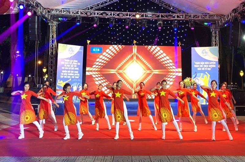 Phần trình diễn của Đội thi dân vũ H.Trảng Bom tại hội thi dân vũ thể thao do Hội LHPN tỉnh tổ chức.