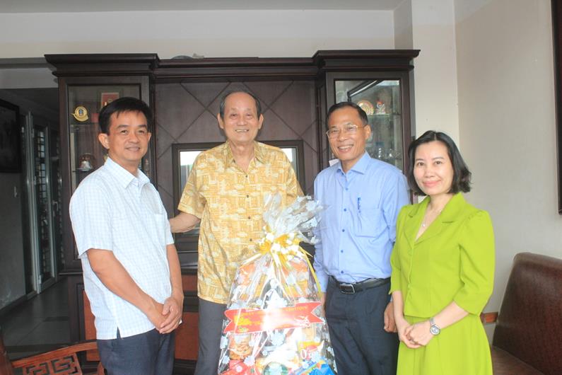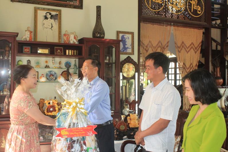 Đồng chí Trưởng Ban Tuyên giáo Tỉnh ủy Phạm Xuân Hà (thứ 2 từ phải sang) chúc Tết gia đình đồng chí nguyên Ủy viên Ban TVTU, nguyên Trưởng Ban Tuyên giáo Tỉnh ủy Võ Minh Quang