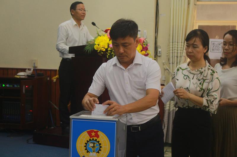 Các đại biểu bỏ phiếu giới thiệu nhân sự tham gia Ban Chấp hành, Ban Thường vụ, Ủy ban Kiểm tra CĐVC tỉnh