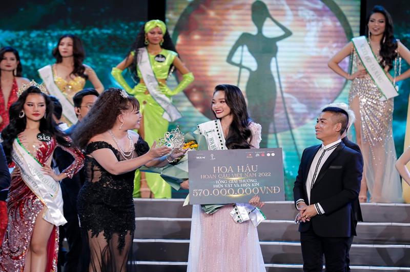 Phạm Kim Ngân (người Đồng Nai, ở giữa) đăng quang Hoa hậu Hoàn cầu Việt Nam 2022