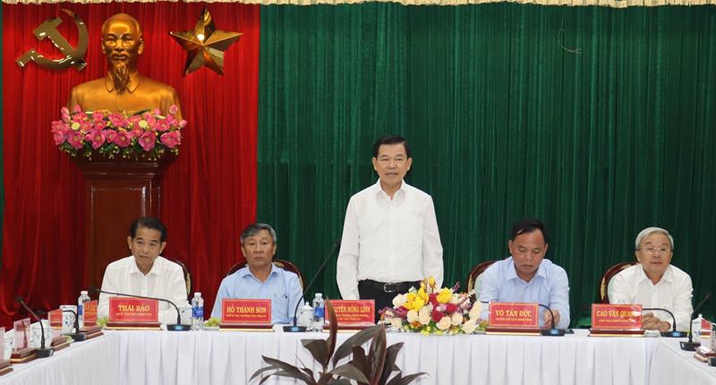 Đồng chí Nguyễn Hồng Lĩnh, Ủy viên Trung ương Đảng, Bí thư Tỉnh ủy phát biểu tại buổi làm việc