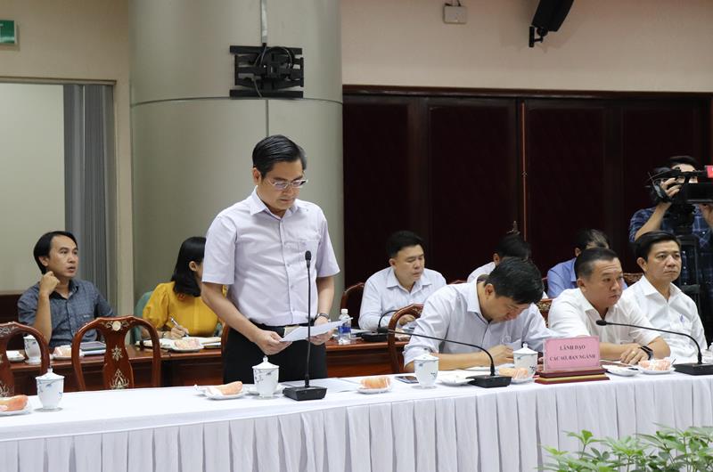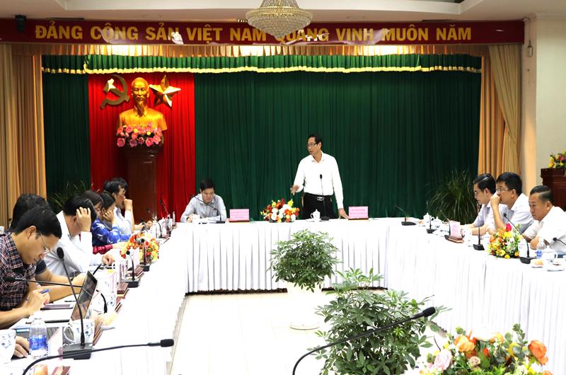 Phó giám đốc Sở TN-MT Trần Trọng Toàn báo cáo với đoàn công tác tại buổi làm việc