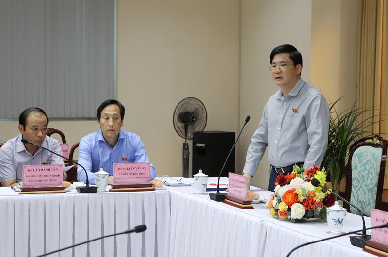 Phó Chủ tịch UBND tỉnh Võ Văn Phi phát biểu tại buổi làm việc với Đoàn công tác Ủy ban Khoa học, công nghệ và môi trường của Quốc hội