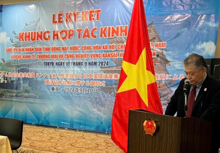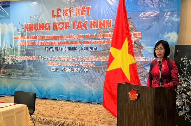 Phát biểu tại buổi lễ, Phó Chủ tịch UBND tỉnh Nguyễn Thị Hoàng cho biết, trong thời gian qua, 2 bên đã tích cực triển khai các nội dung ký kết và đã đạt được những kết quả tốt đẹp, giúp nâng cao chất lượng môi trường đầu tư của tỉnh Đồng Nai. Đồng thời, góp phần vào việc thúc đẩy phát triển kinh tế giữa Đồng Nai và vùng Kansai. Xây dựng và tăng cường mối quan hệ hợp tác kinh tế bền vững giữa 2 bên.