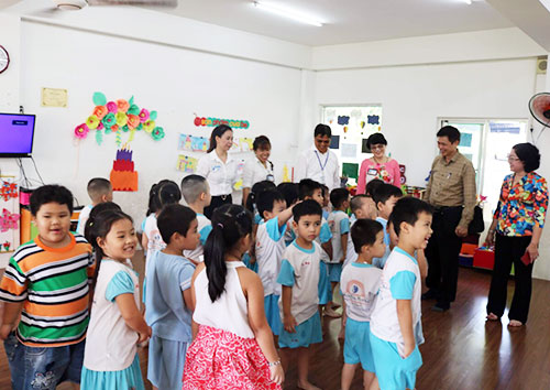 Đoàn công tác Bộ GD-ĐT đến thăm Trường mầm non Những bông hoa nhỏ (thuộc Công ty Pouchen, phường Hóa An, TP. Biên Hòa).