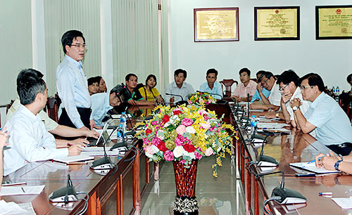 Giám đốc Sở Công Thương Dương Minh Dũng phát biểu tại buổi làm việc ngày 2-10 với lãnh đạo TX. Long Khánh, đại diện các HTX, tổ hợp tác trên địa bàn về giải pháp đưa nông sản địa phương vào chợ đầu mối Dầu Giây.