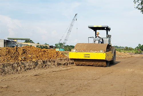 Thi công tuyến đường cao tốc Bến Lức - Long Thành đoạn thuộc địa bàn huyện Long Thành. Ảnh:K.Giới