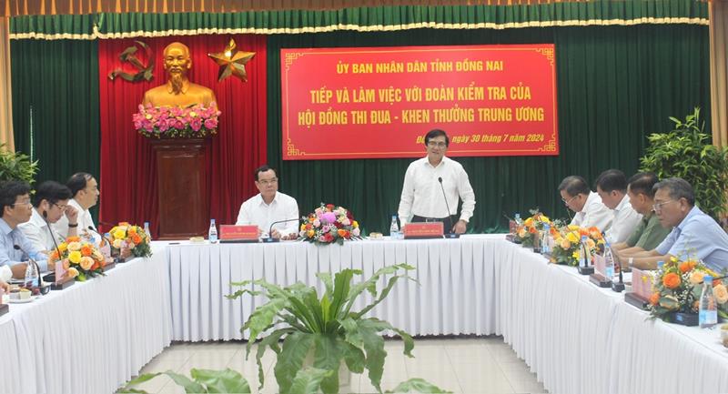 (CTT-Đồng Nai) - Chiều 30-7, tại UBND tỉnh, Đoàn kiểm tra của Hội đồng Thi đua - khen thưởng (TĐKT) Trung ương do đồng chí Nguyễn Đình Khang, Ủy viên Trung ương Đảng, Chủ tịch Tổng Liên đoàn Lao động Việt Nam, Phó Chủ tịch Hội đồng TĐKT Trung ương làm trưởng đoàn đã có buổi làm việc về thực hiện công tác TĐKT trên địa bàn tỉnh Đồng Nai.