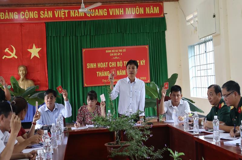 Đồng chí Nguyễn Xuân Kiều, Bí thư Chi bộ ấp 4 cho biết: Chi bộ ấp 4 hiện có 19 đảng viên, trong đó có 1 đảng viên được miễn sinh hoạt theo Điều lệ, 1 đảng viên đi làm ăn xa... Tháng 8 và 8 tháng đầu năm 2022, Chi bộ đã lãnh đạo thực hiện khá tốt chỉ tiêu mà nghị quyết đề ra: Hoàn thành tốt các nhiệm vụ chính trị, kinh tế, đảm bảo quốc phòng an ninh; đặc biệt ổn định tình hình mọi mặt trong các dịp cao điểm Tết nguyên đán, kỷ niệm Ngày giải phóng hoàn toàn miền Nam, thống nhất đất nước, kỷ niệm 75 năm Ngày Thương binh liệt sĩ; đặc biệt trước, trong, sau Quốc khánh 2-9…