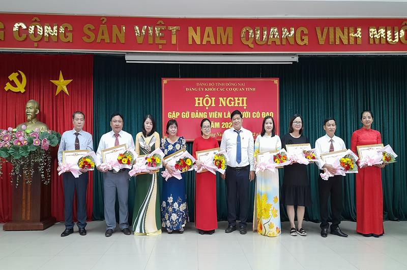 Thường trực Đảng ủy Khối các cơ quan tỉnh khen thưởng đảng viên là người có đạo thực hiện xuất sắc nhiệm vụ năm 2022.