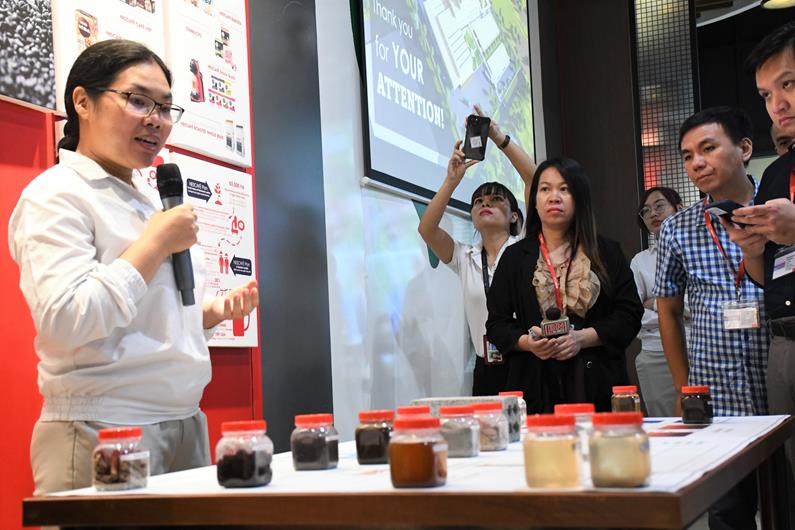Nhân viên kỹ thuật của Nestlé giới thiệu về cách thức sản xuất cà phê “Không chất thải rắn chôn lấp ra môi trường” ở nhà máy cà phê Trị An, KCN AMATA, Biên Hòa.