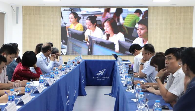 Quang cảnh buổi làm việc giữa đoàn giám sát với Trường đại học Lạc Hồng