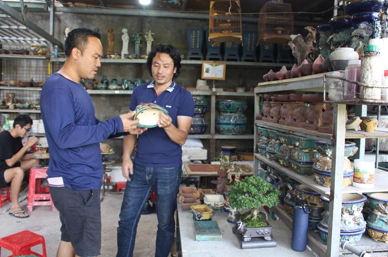 Hoàng Minh Hải sử dụng gốm thủ công truyền thống của Biên Hòa phục vụ thú chơi bonsai, cây cảnh