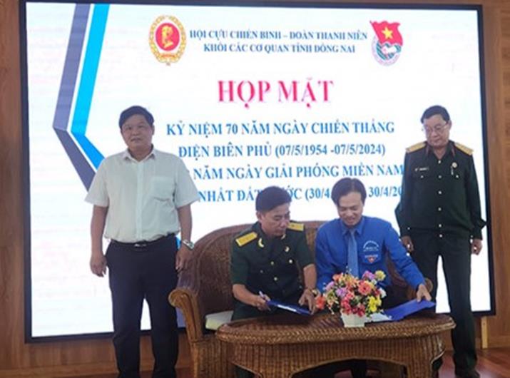 Nhằm tiếp tục phối hợp giáo dục lý tưởng cách mạng cho thế hệ trẻ của Đoàn khối và Hội cựu chiến binh khối, Ban Thường vụ Đoàn khối và Ban Thường vụ Hội cựu chiến binh khối các cơ quan tỉnh đã ký kết phối hợp tổ chức các hoạt động kỷ niệm kỷ niệm 55 năm thực hiện Di chúc của Chủ tịch Hồ Chí Minh (1969 - 2024) và hoạt động kỷ niệm 80 năm Ngày thành lập Quân đội dân dân Việt Nam (22-12-1944 - 22-12-2024) cũng như các sự kiện quan trọng của đất nước.