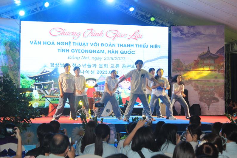 Tham gia giao lưu văn hóa, nghệ thuật, thanh thiếu niên 2 tỉnh Đồng Nai và Gyeongnam đã đem đến nhiều tiết mục văn nghệ đặc sắc với các thể loại: múa, hát, nhảy hiện đại với các nội dung ca ngợi tình yêu quê hương đất nước, mối quan hệ hữu nghị giữa 2 quốc gia Việt Nam – Hàn Quốc…