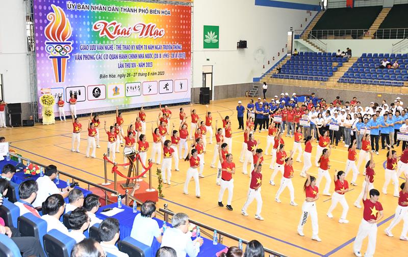 (CTT-Đồng Nai) - Sáng 27-8, UBND TP.Biên Hòa (đơn vị đăng cai) tổ chức giao lưu văn nghệ - thể thao kỷ niệm 78 năm Ngày truyền thống Văn phòng các cơ quan hành chính nhà nước (28-8-1945 - 28-8-2023); kỷ niệm 78 năm Ngày Quốc khánh nước Cộng hòa xã hội chủ nghĩa Việt Nam (2-9-1945 - 2-9-2023). Phó Chủ tịch UBND tỉnh Võ Văn Phi đã đến dự và phát biểu khai mạc buổi lễ.