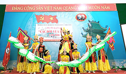 Học sinh tham gia hội thi kể chuyện các đời Vua Hùng năm 2018.