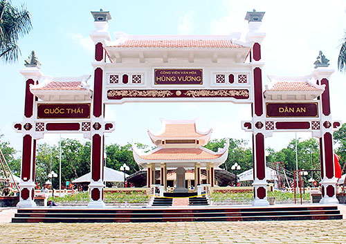Công viên Văn hóa Hùng Vương được khởi công xây dựng từ tháng 8-2017, tọa lạc trên vùng đất rộng, với diện tích gần 11.000m2, có tổng mức đầu tư hơn 42 tỷ đồng (trích từ ngân sách huyện và sự đóng góp của các mạnh thường quân). Công trình được chia làm 2 giai đoạn, được thực hiện từ năm 2017 đến 2020. Đến nay, các hạng mục chính của công trình gồm: nhà tưởng niệm Vua Hùng, nhà bia, nghi môn, tượng Vua Hùng, Lạc Hầu, Lạc Tướng, đỉnh hương; trang thiết bị nhà tưởng niệm Vua Hùng, hệ thống giao thông chính, hệ thống điện, nước, hệ thống phòng cháy, chữa cháy, chống sét, vườn hoa, khuôn viên cây xanh… đã cơ bản hoàn thành.