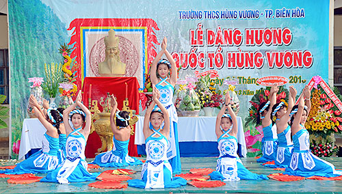 Tại TP. Biên Hòa, từ ngày 19-4 đến 25-4 đã đồng loạt tổ chức các hoạt động như: Hội thi kể chuyện các đời Vua Hùng, tổ chức hội thi gói bánh chưng, làm bánh dày, trang trí mâm ngũ quả; thi các trò chơi dân gian; tổ chức phố ông đồ; chợ ẩm thực… thu hút đông đảo các tầng lớp nhân dân tham gia. Mâm ngũ quả và bánh chưng, bánh dày của các đội đoạt giải trong hội thi được làm lễ vật dâng cúng trong ngày giỗ Tổ Hùng Vương vào sáng nay 25-4 (tức mùng 10-3 âm lịch). Riêng trong sáng 24-4, tại Trường THCS Hùng Vương, tập thể giáo viên và học sinh đã thành kính hướng về Quốc giỗ với nhiều hoạt động: dâng hương, ôn lại truyền thống các đời Vua Hùng, biểu diễn văn nghệ…