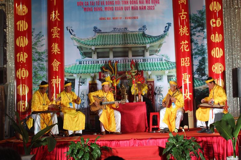 Một tiết mục do tài tử đờn, tài tử ca trong Câu lạc bộ đờn ca tài tử tỉnh Đồng Nai biểu diễn vào tháng 2-2023