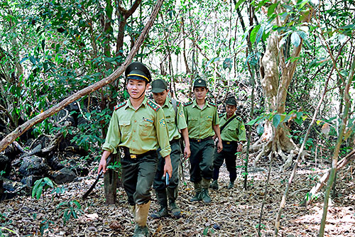 Lực lượng kiểm lâm của Vườn quốc gia Cát Tiên tuần tra bảo vệ rừng.