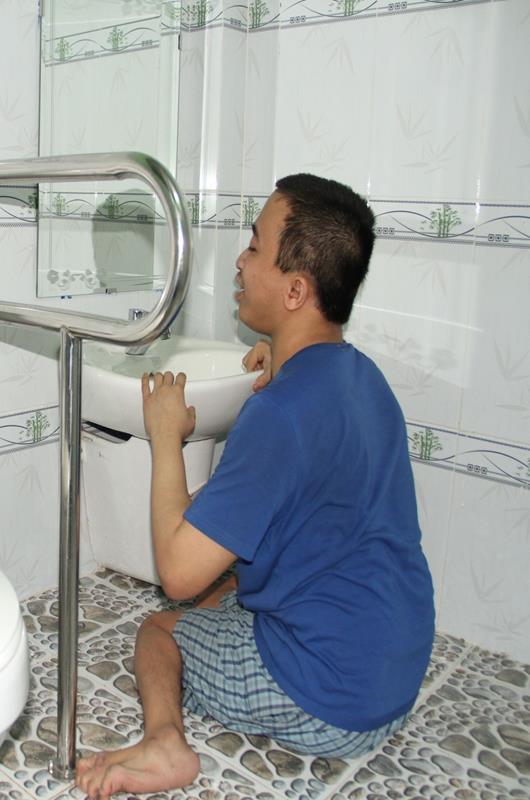 Anh Thái cho hay, trước đây nhà vệ sinh dùng chung của cả nhà anh không sử dụng được vì chiều cao không phù hợp. “Mình lớn rồi nên cũng rất ngại nếu mỗi khi vệ sinh cá nhân phải nhờ mẹ hay người thân hỗ trợ” - anh Thái chia sẻ.