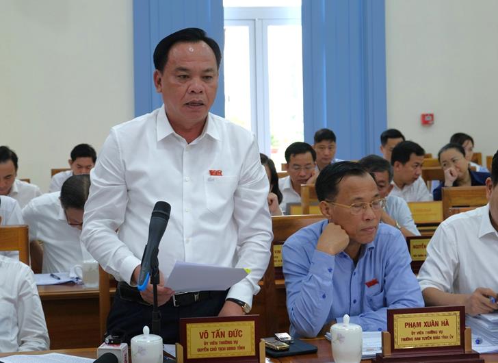 Quyền Chủ tịch UBND tỉnh Võ Tấn Đức phát biểu tại hội nghị.