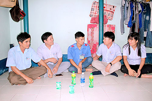 Đại diện Công đoàn Công ty Great Veca thăm hỏi công nhân tại ký túc xá.