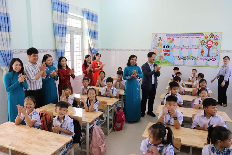 Hiệu trưởng Trường tiểu học Tập Phước (xã Long Phước, H.Long Thành) Nguyễn Thị Hiền cho biết, cuối năm 2022, điểm trường Trường tiểu học Tập Phước được hỗ trợ kinh phí xây dựng mới 5 phòng học. Công trình được xây dựng trên nền dãy phòng học cũ của điểm trường với quy mô 1 trệt, 1 lầu, tổng diện tích trên 500m2. Tổng kinh phí thực hiện trên 3,8 tỷ đồng, trong đó Tập đoàn LS tài trợ thông qua Tổ chức COPION/Hàn Quốc là 1,5 tỷ đồng, ngân sách huyện đối ứng hơn 2,3 tỷ đồng. Công trình hoàn thành đã giúp cho việc dạy và học của cô, trò tại điểm trường này thêm thuận lợi hơn rất nhiều.