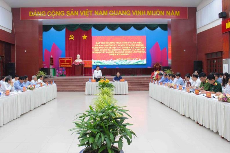 Tập thể thường trực Tỉnh ủy làm việc với Ban Thường vụ Huyện ủy Long Thành về kết quả 2,5 năm thực hiện nghị quyết Đại hội Đảng bộ tỉnh, huyện nhiệm kỳ 2020-2025