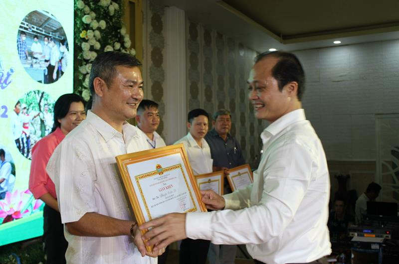 Chủ tịch Hội Nông dân tỉnh Nguyễn Tuấn Anh trao giải nhất cho đội của Hội Nông dân H.Xuân Lộc. Ảnh: Phan Anh