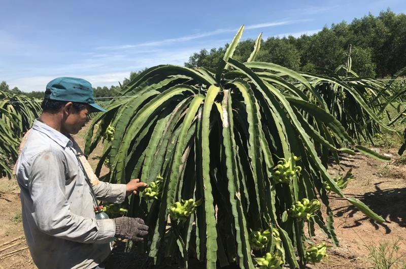 Theo số liệu từ Sở NN-PTNT, tính đến cuối tháng 4 năm 2022, tổng diện tích thanh long trên địa bàn tỉnh còn hơn 1,3 ngàn ha, giảm hàng trăm ha so với năm trước đó. Nguyên nhân diện tích thanh long ruột đỏ giảm mạnh do 2 năm trở lại đây, loại trái cây đặc sản thuộc tốp đầu cho thu nhập cao lại trở thành nguyên nhân khiến nhiều nông dân mang nợ khi liên tục đứng ở mức thấp vì xuất khẩu khó khăn.