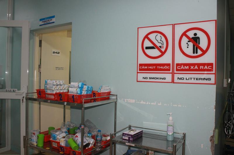 Biển báo khu vực cấm hút thuốc lá tại Bệnh viện Đa khoa Đồng Nai