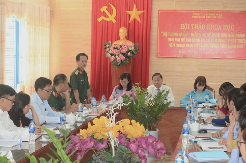 Phát biểu tại hội thảo, đồng chí Phạm Xuân Hà, Ủy viên Ban TVTU, Trưởng ban Tuyên giáo Tỉnh ủy đề nghị các đại biểu tham dự, các giảng viên Trường Chính trị tỉnh và các nhà khoa học tập trung thảo luận làm rõ hơn nữa bối cảnh, diễn biến, nội dung, ý nghĩa to lớn của việc ký kết Hiệp định Paris và quá trình vận dụng, phát triển sáng tạo nền ngoại giao Việt Nam trong tình hình hiện nay.
