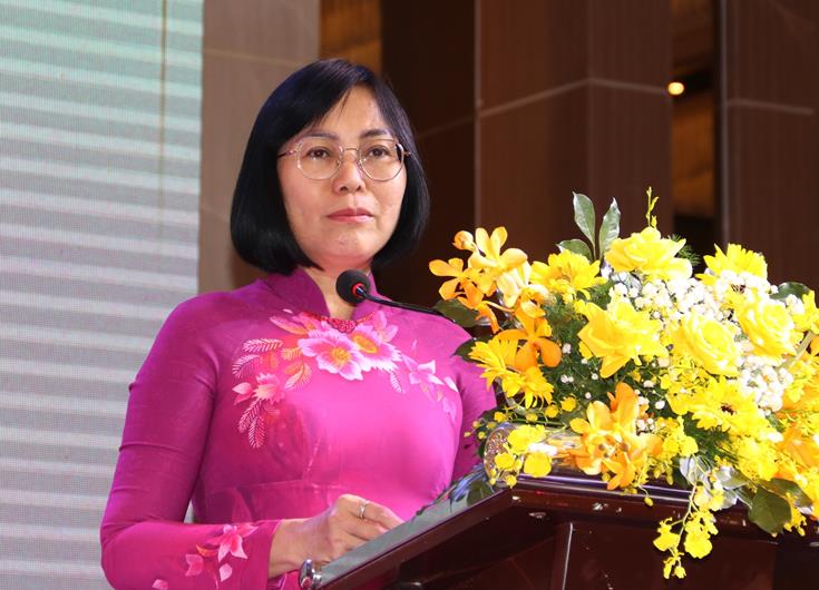 Phó Chủ tịch UBND tỉnh Nguyễn Thị Hoàng phát biểu tại đại hội